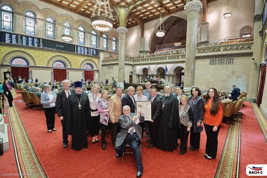In a commendable spirit of bi-partisanship, Democrat Espaillat from Manhattan was joined as co-sponsor by Republican Majority Leader Dean G. Skelos, and Senators Golden and Bonacic, both of whom also co-sponsored the resolution last year, and Senator Simcha Felder of Brooklyn who joined the co-sponsors this year. Among the members of the coalition was the representative of the Russian Orthodox Church, Father Alexander G, who was invited by the speaker to give the invocation and blessed the work of the Senate.