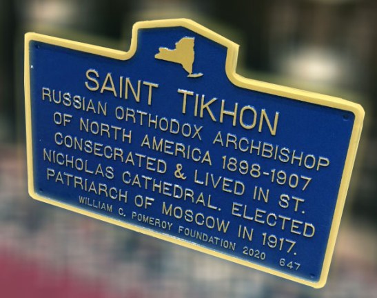The unveiling of plague in memory and honor of Patriarch Tikhon at the building of St. Nicholas Cathedral in NYC where Russian Orthodox Archbishop of North America Saint Tikhon laid the cornerstone, consecrated and lived.